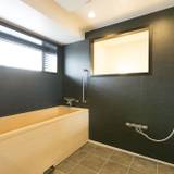 「ジュニアスイートルーム」に泊まりました。ヒノキの浴槽に広いダイニングキッチンやドラム洗濯機付きで、暮らすように泊まれます。