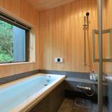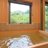 「萱」のお部屋には、薫り高い檜のお風呂が備わっています。2つあるから渋滞せずに使用できるのがいいところ。静かな田舎暮らしを体験しながら、存分にリラックスしましょう。