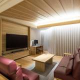 東館客室は、85型TVと本格的なサウンドバーを完備。ホームシアター気分を楽しめる