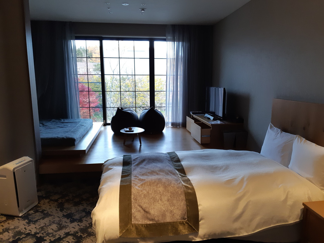部屋は北欧風でおしゃれ!で、デイベッドもあり、建物の中もライブラリーコーナーや椅子が配置されていたりしたのでゆったりと過ごすには最高のホテルだと思います。1 / 3