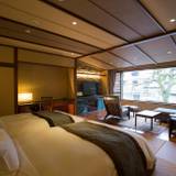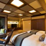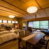 加賀温泉駅より車で約10分。「森の栖リゾート&スパ」は、森の中に佇む隠れ家的温泉宿です。露天風呂付きやジャグジー付きの客室をはじめ、館内には広大な庭園や温水プール、2つの浴場といった癒しの空間が広がります。石川の旬食材を味わうこだわりの会席や、豪華な鉄板料理などの食事も魅力です。