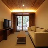 ソファは傷や汚れに配慮した素材で、愛犬と快適に寛げます。ロンネフェルトの紅茶、Blu-rayプレーヤー、ミキモトのアメニティなど、滞在が楽しくなるアイテムも◎。