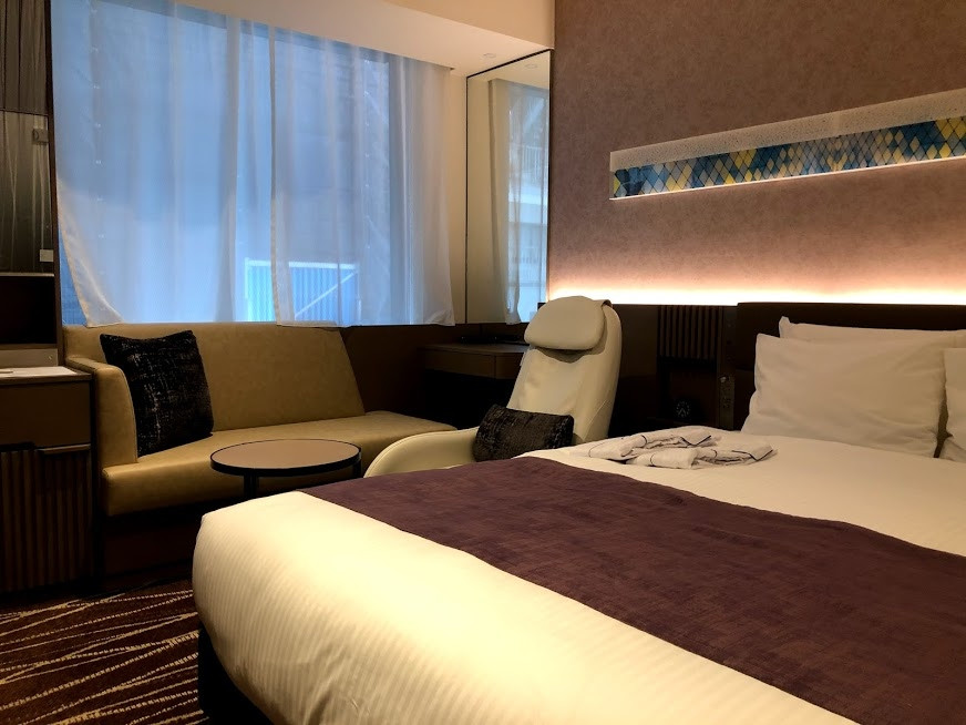 全室にマッサージチェア完備。新橋と銀座の間にある気持ちよく眠れるホテル