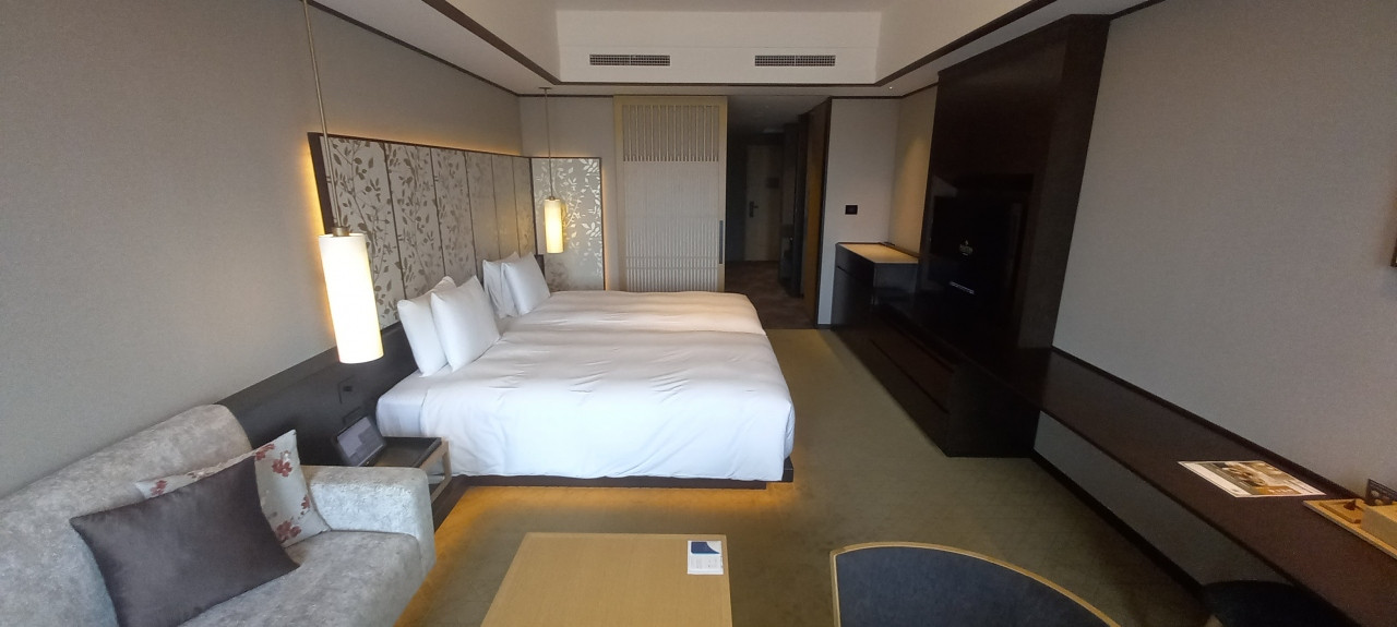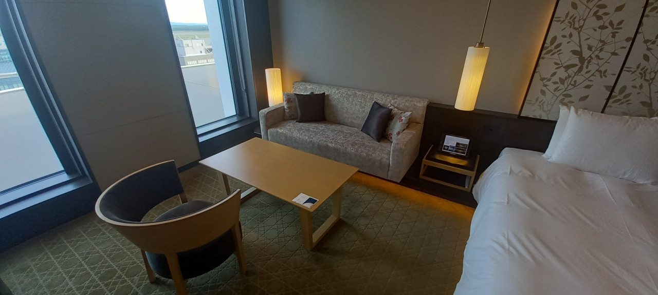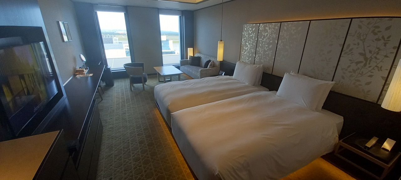 国内線滑走路が見えるツインルームに宿泊。ベット、ソファ、アメニティ、ふかふかタオル、どれも料金に見合う部屋です。朝食ビュッフェも満足。気になる所は丁寧すぎるスタッフに見られているロビーフロアの居心地の悪さと館内が暗すぎます。食事を楽しみ、部屋でゆっくり滞在する方にお勧めのホテルです。