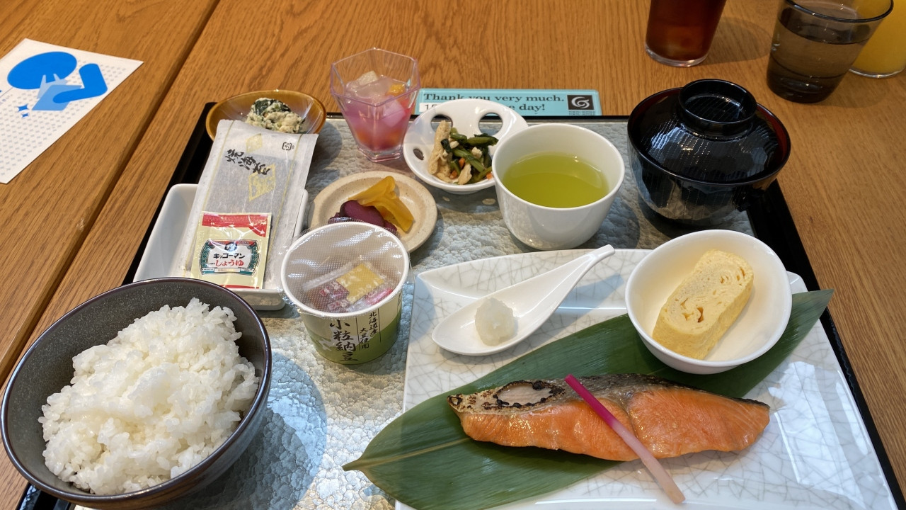 朝食は仕事前ということでほとんど食べませんでしたが、とん平焼きやたこ焼きなどのご当地グルメもあり、バリエーションも豊富でした。