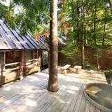 仙台空港より車で約60分。「温泉山荘 だいこんの花」は、遠刈⽥温泉の森の中にひっそりと佇む宿です。広大な敷地内には全18室の離れの客室があり、木のぬくもりを感じる空間で静かなひとときを過ごせます。貸切露天風呂で湯めぐりや、旬の野菜が引き立つ和食を味わい、至福のひとときを。