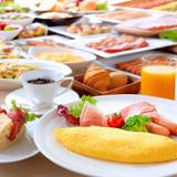 朝食はレストラン「ハフ」でビュッフェを。サラダやフルーツ、パン、総菜など和洋織り交ぜた料理が並びます。ローストビーフやカルパッチョなど気分が上がるメニューも♪デザートも充実!朝から口福気分で過ごせます。