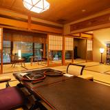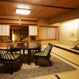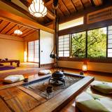 特別室、新館、本館いずれも上質なインテリアや美術品が彩る和の空間。非日常な時間を過ごせますよ。「所縁」など新館の4室は、本間、次の間、踏込からなるお部屋。「紀文」をはじめ本館の3室はベッドを完備しています。