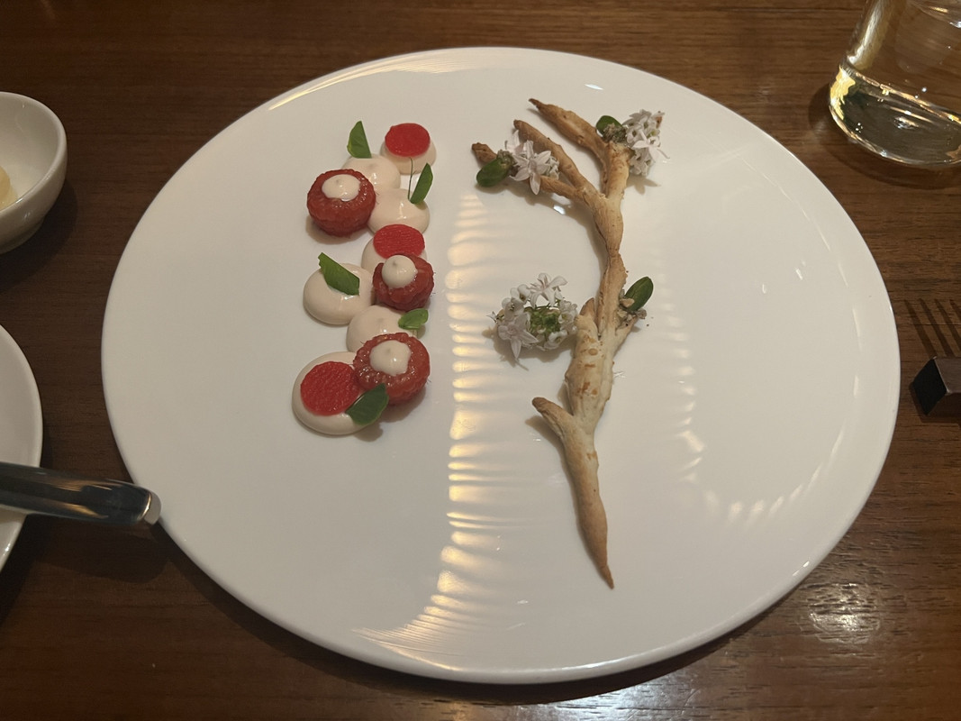 東京湾と東京タワーを眺められるロケーションで、ディナーはお料理も盛り付けが美しくとても素敵な時間を過ごすことができましたが、給仕は少し遅め。