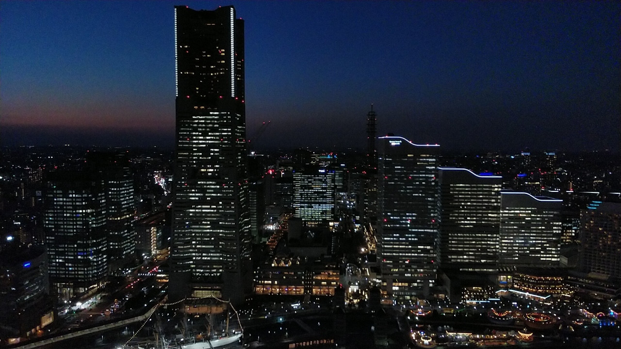 ランドマークタワーとクイーンズスクエアの展望(夕暮れ)