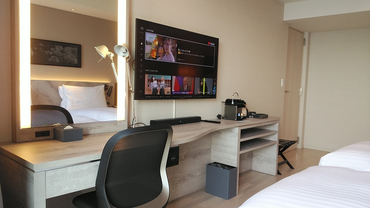宿泊した一番下のランクの部屋でも34㎡、十分な広さがあります(ただし、バスタブ無しシャワーのみ)。