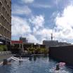 国際通りに面しているプールは、25mのアウトドアプール、キッズプール、ジャグジーがあり、浮き輪の貸出は無料、パラソルとビーチベッドの数が少なかったです。