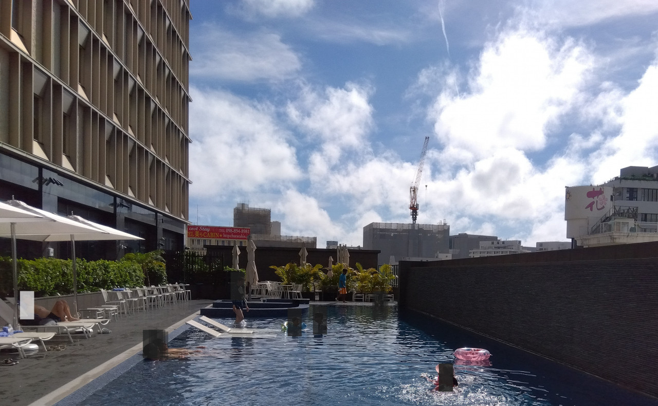 4階には宿泊者専用のアウトドアプールがあり、国際通り沿いにいながらリゾート気分を楽しむことができました。