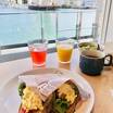 2Fレセプション横にはカフェレストランがあり、とても開けていて海を目の前にしてランチがいただけたり、ワークペースとしても利用できてとてもいいです。