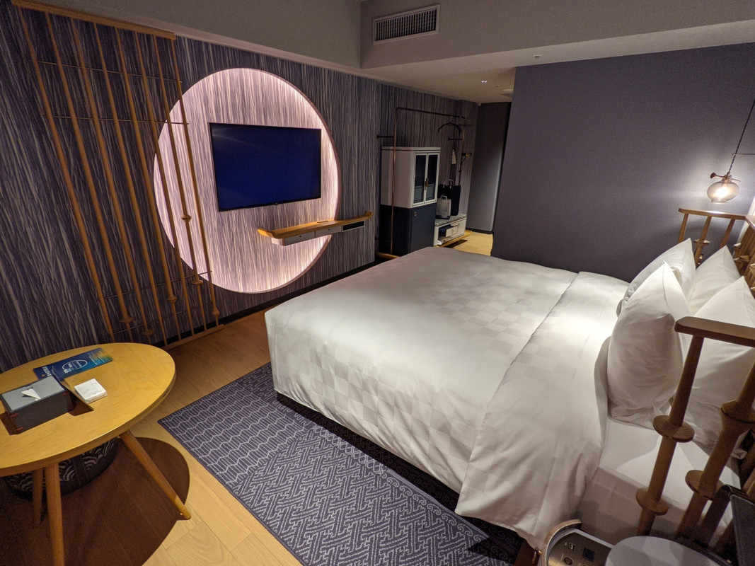 京都駅近くで便利でした。館内は「平安京、貴族の遊び」をコンセプトに和モダンなつくり!月見障子をイメージした壁やかんざしのデザインの照明器具など日本の今昔が見事に融合したデザインで見ていて楽しかったです。朝食も種類豊富でおいしかったです。