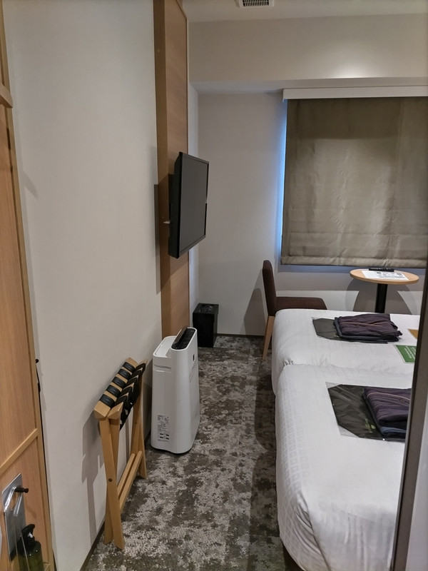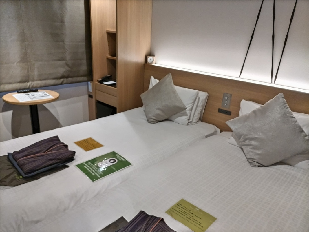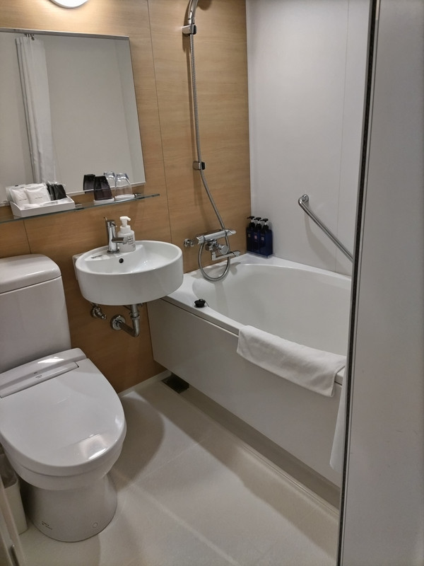 新しくてきれいな建物で、最近のホテルでは普通の設備が整っています。シングルベッドが2台並んでいる部屋でしたが、隙間にスマホや本が落ちるので、注意が必要かもしれません。落としましたが、充電ケーブルがつないであったので、簡単に救出できました。また、新しめのホテルにしては、部屋のwifiがかなり遅くて使いにくいです。端っこの部屋というわけでもなかったですし。椅子に座って机を利用すると、テレビが後ろになりますし、部屋が広くないので、2人で利用すると椅子も1つしかないなど、いろいろと不便な気がしました。部屋のお風呂は、バスタブも広めでした。