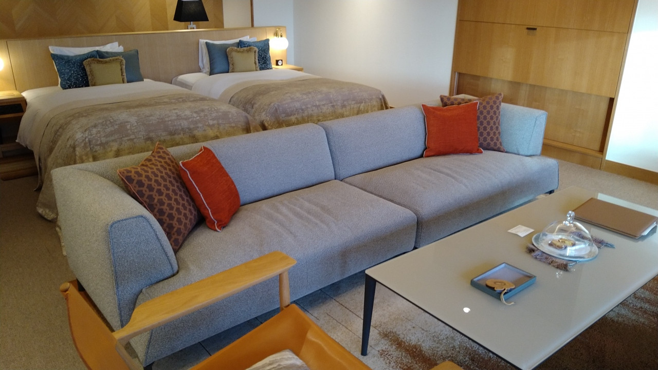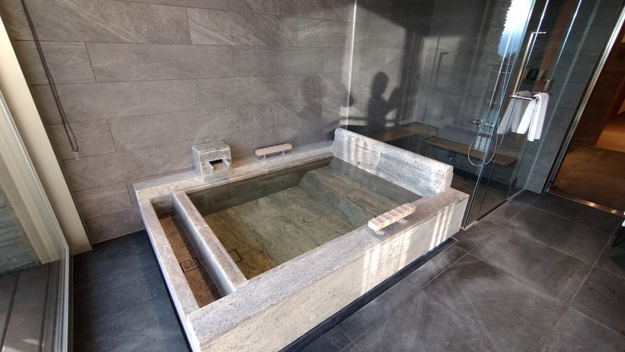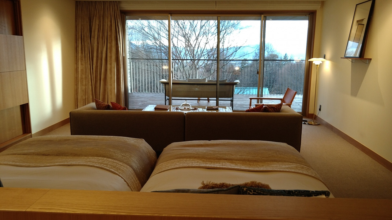 宿泊したのはデラックスツインでしたが広いテラスと半露天温泉風呂が