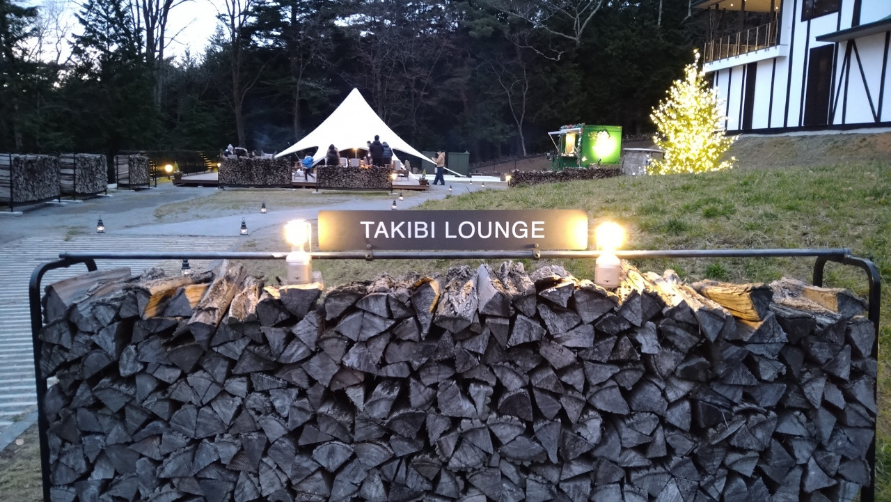 また屋外のTAKIBIラウンジでは焚火を囲んでホットワイン、