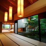 玄関からロビーまでのアプローチが素敵な日本旅館。部屋数に比べて開放感溢れる広いロビーが贅沢です。