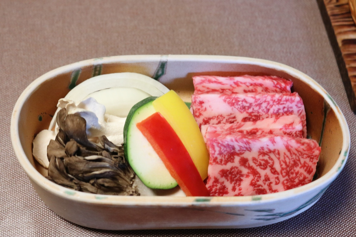 食事は完全個室で上州牛をいただきました。料理は美味しいです。