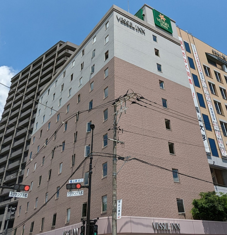 福山駅北口から徒歩1-2分程のところにあるビジネスホテルです。福山駅からのアクセスは抜群でした。また、福山城)福山城公園)の直ぐ脇にあったのでロケーションも最高でした。客室は広く、新幹線が通過するときの音も気にならないような防音対策も十分だったのでゆっくりと過ぎすことができました。