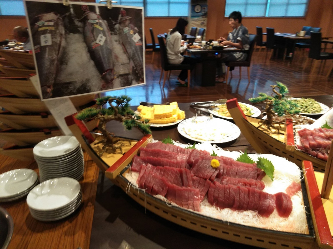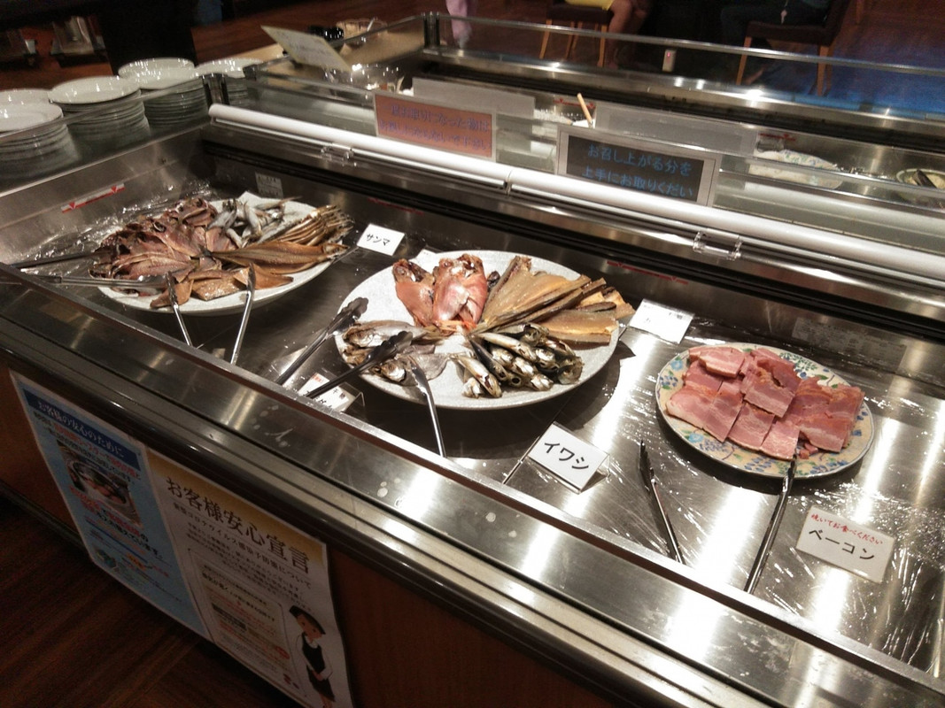 こちらの夕食は海鮮浜焼き、焼肉バイキングで、肉も魚も貝も自席の無煙ロースターで焼き放題。さらにイセエビのマヨネーズ焼きやキンメダイの煮つけ、かになど、とっても豪華な食べ放題。。。コロナの影響も対策ばっちりで安心。
