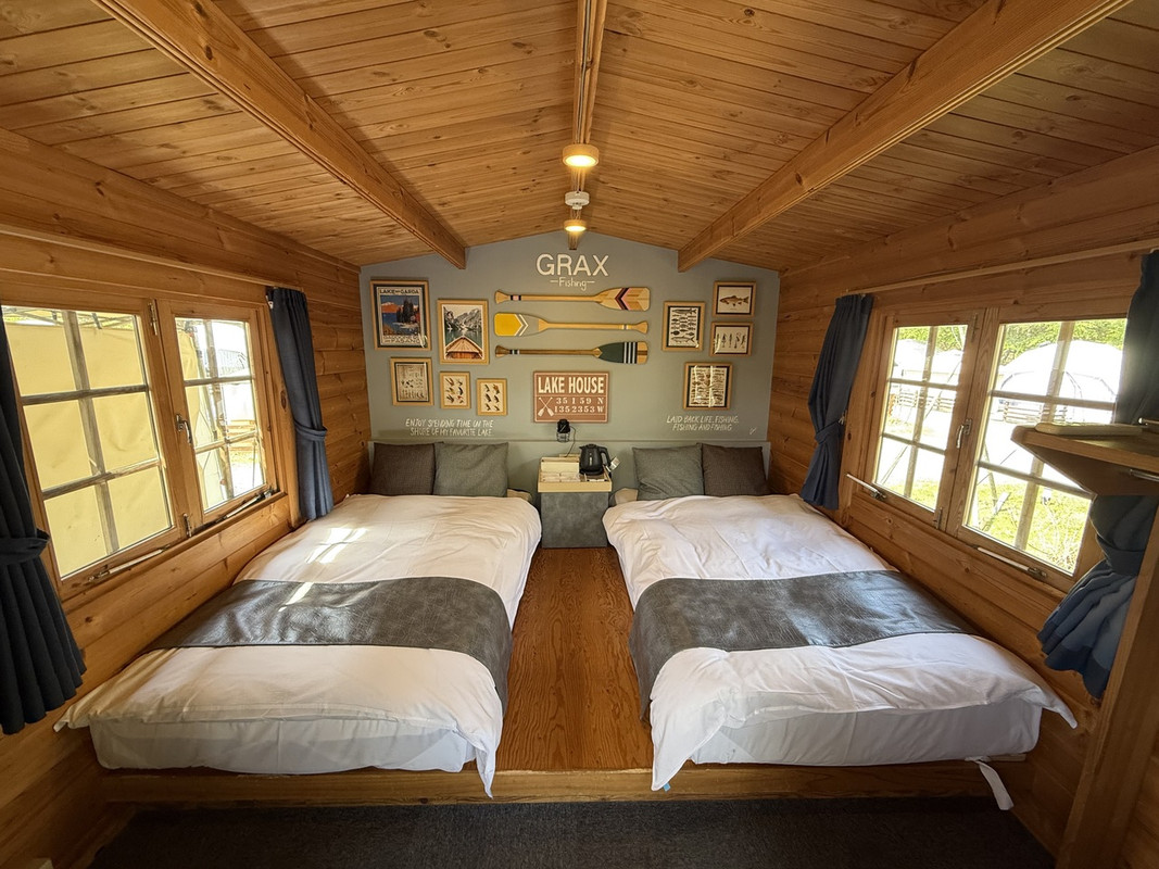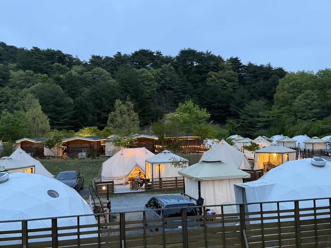 京都府るり渓にあるグランピング施設。ゴールデンウィークのタイミングで子供を連れて伺いました。ゴールデンウィークだったこともあると思いますが、駐車場は宿泊者専用のスペースですら車を停めることがまともに出来ず、隣接する子供が遊べるアスレチックや遊び場は人がいすぎてまともに遊べません。またランチをしようとレストランに行きましたが入るだけで2時間待ち。隣接の温泉も同様に芋洗いよりもひどい状態でまともに入ることすら出来ません。