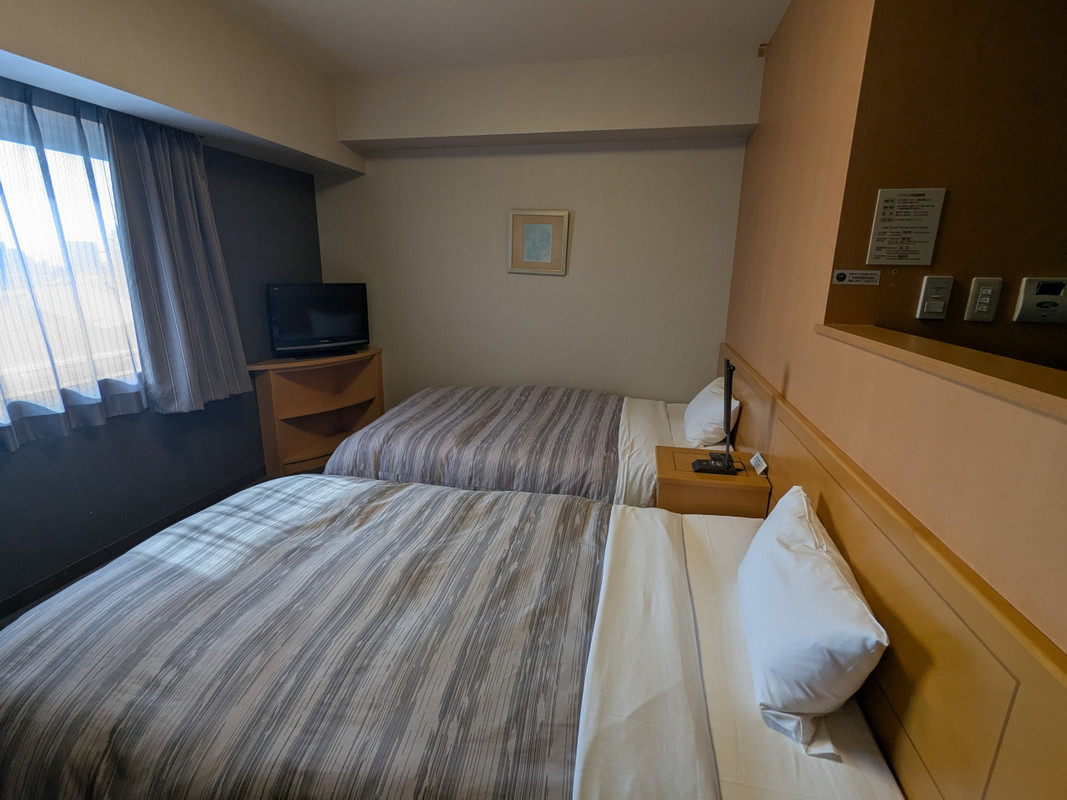 お部屋は8Fのツインでした。部屋はきれいでしたが、ユニットバスのにおいが私は気になりました。臭くてフロントのスタッフに来ていただきました。