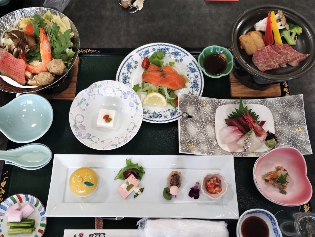 食事は和洋膳、夕食時は釜めしまでつきます。
