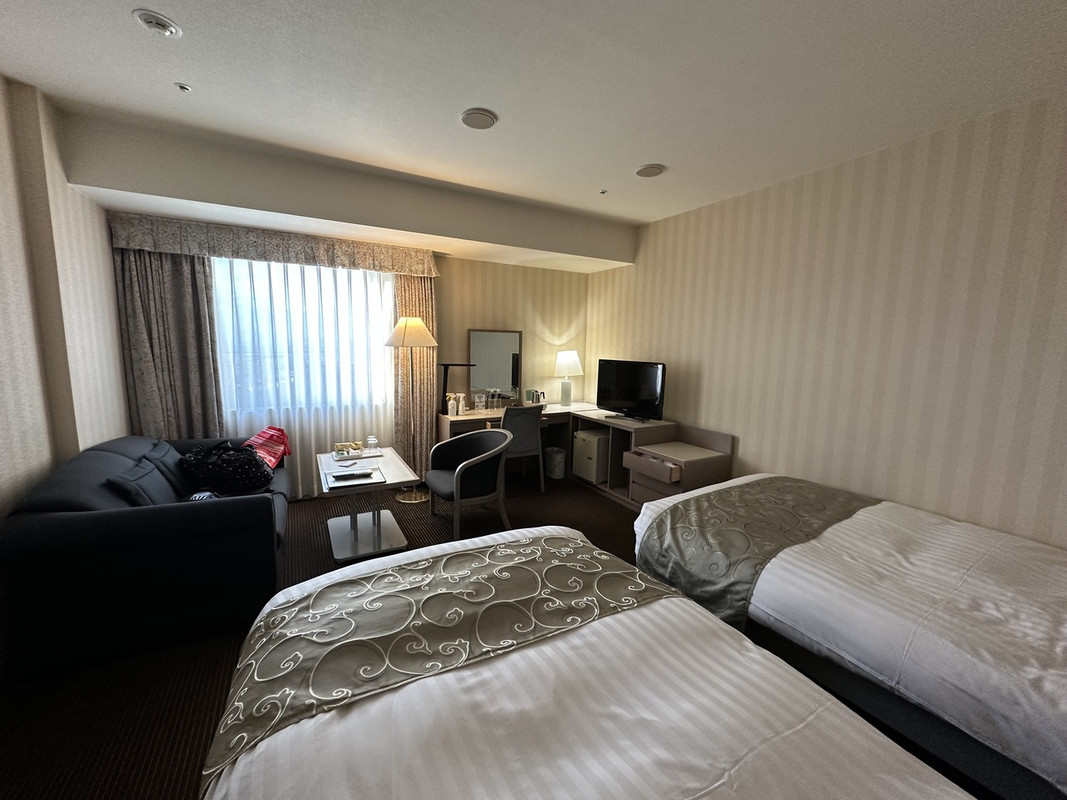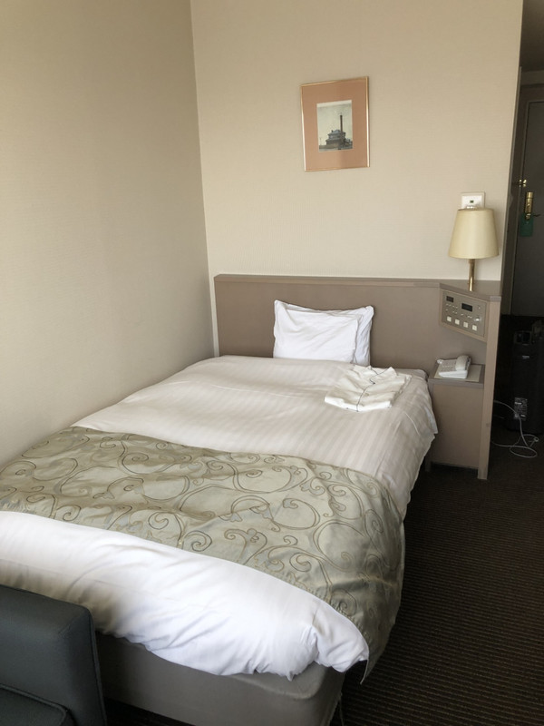 青森を代表するフラッグシップホテルだと思われる。部屋もベッドも広々としており、施設も立派だが、駅から遠いのが最大の難点か。