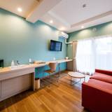 マンションのようなホテルです。そのため、部屋は広いので狭いところが苦手な方にお勧めです。ガスストーブの周りに髪の毛が落ちているなど、あまり清掃がされていないので、清潔感を重視される方にはお勧めしません。地下鉄の駅から近く立地は便利です。ですが、ホテル前の駐車場は少ないことと料金が高いため、近隣のコインパーキングを利用する事になるため、少し不便です。