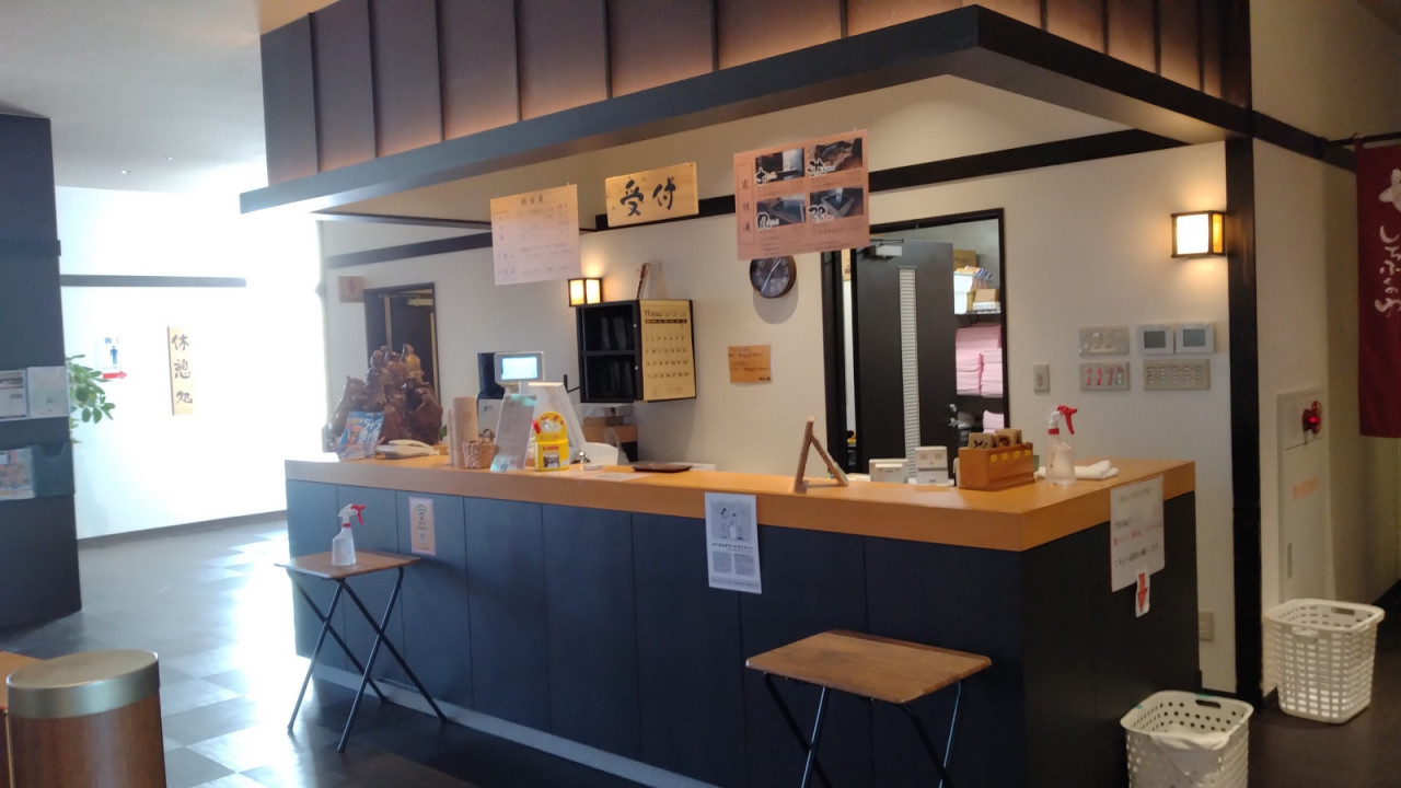 駐車場も広く、外観はゆったりした雰囲気です。宿泊料金はそれなりに高額ですが、館内は意外にあっさりで高級感や洒落た印象はあまりなく、公共の会館やホールといった風情です。