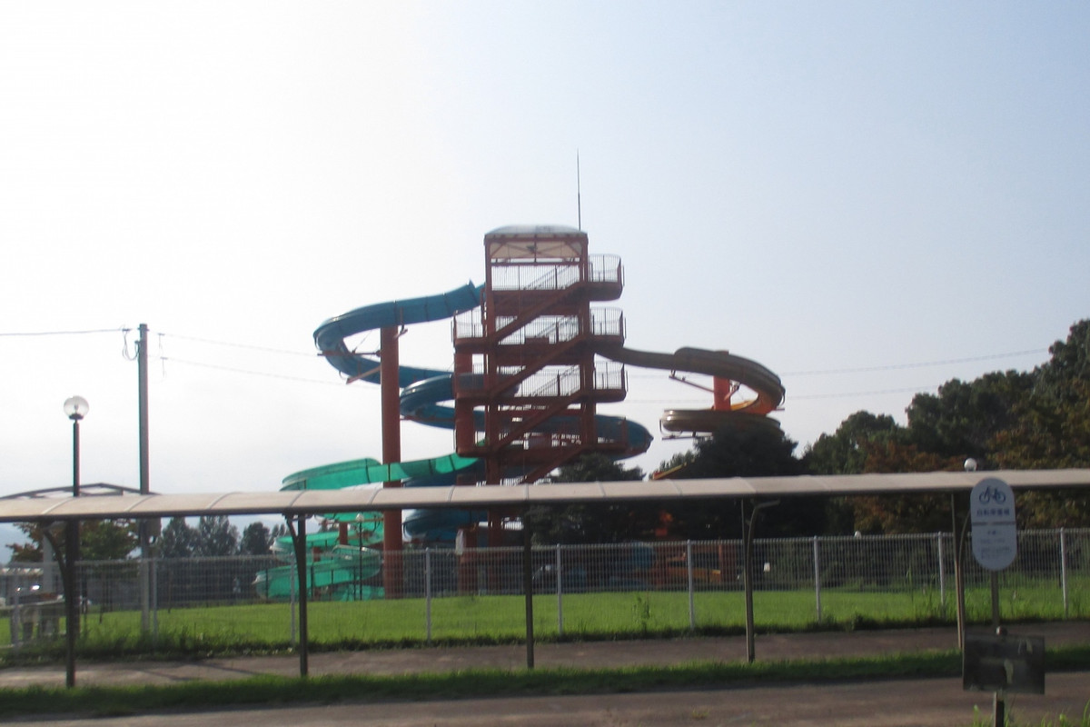 チェックインの時は気が付きませんでしたが、朝、チェックアウト後に駐車場から廻りを見回したら、大きなウォータースライダーが見えました。ホテルの隣りに、プールなどの遊興施設があるのかと思ったら、ホテルの付属施設でした。利用は9月だったので気が付きませんでしたが、夏期だとホテル内でプール利用者を見掛けることになるのでしょうね。