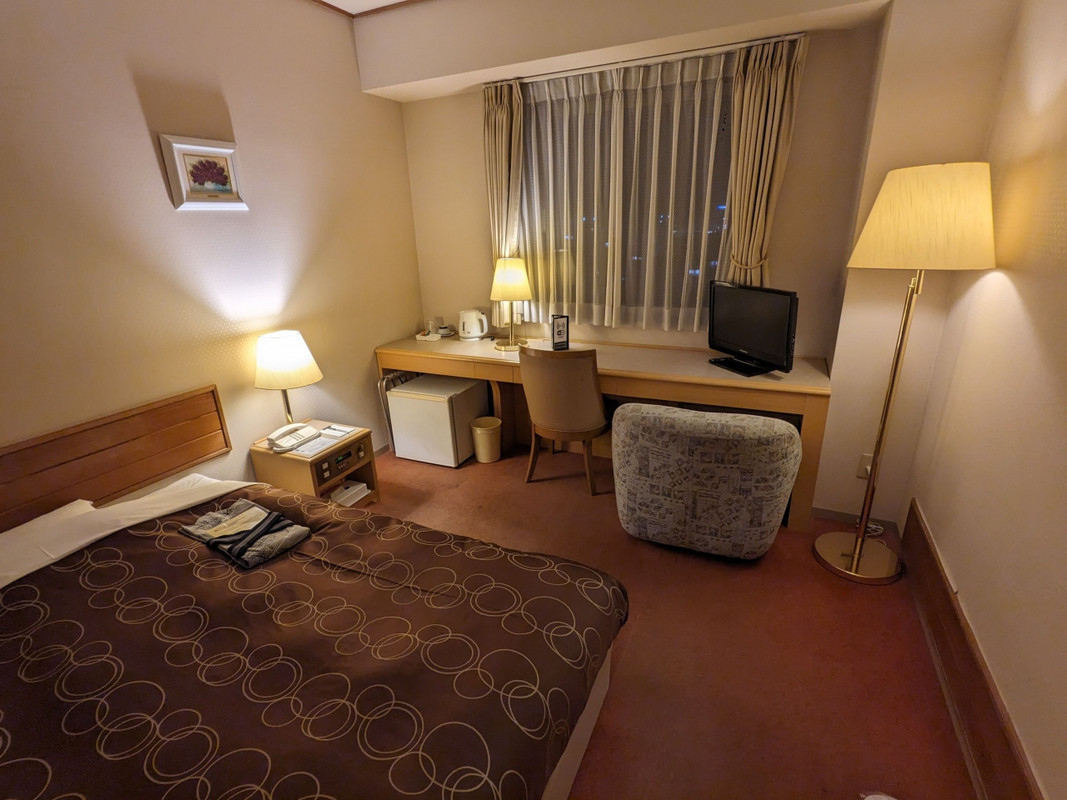 つくば駅近くのシティホテル。老朽化しているが結構ゴージャスの内装で、かつてはつくばでも指折りのホテルだったろう。駐車場も無料でかつ、地元のお菓子もついてきてお得感がありました。お部屋も何故か椅子が2つあり、快適。必要十分かと思います。