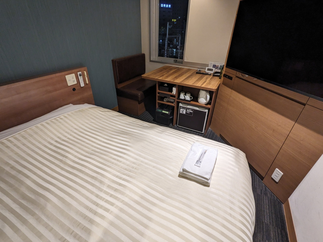 名古屋駅前店だが実際には名古屋駅からは結構距離あります。特に名鉄名古屋駅からはからは15分ぐらいかかりそう。相場よりも安めで、コスパよく、部屋もきれいでいいんだけど自分に割り当てられた部屋は線路沿いで耳栓していてもとてもうるさかったので安いなりかな。次とまるとしたら事前に部屋の調整をしたほうがいいかな。