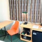 客室はベッドの寝心地も良く、水回りも新しく清潔。カウンターに前客の飲み物の跡と思われる汚れが付いていて、ティッシュを濡らして拭いたら取れましたが、清掃は☆ー1。歯ブラシ以外のアメニティやナイトウェアはロビーからもらっていく方式です。ドライヤーの温風の風量は充分でした。
