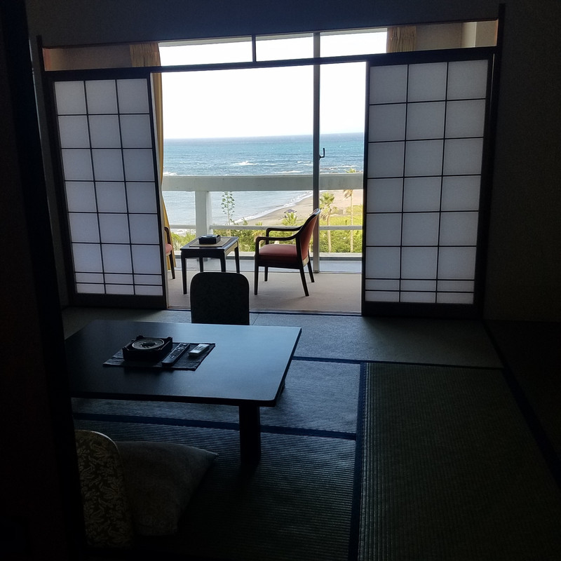 食事については、刺身、鍋物、揚げ物を含め、味も良く温かいものは温かく頂け、満足できる内容でした。又、窓からの眺望も太平洋を前にしたオーシャンビューで、見晴らしはとてもよかった。しかし、一つ残念だったのが、ベランダに面したスライド式ドアにある二つの鍵のうち、一つが壊れたままで、しっかり施錠が出来ない事。正常な一つの鍵で施錠はできるので、防犯上の問題は有りませんでしたが、壊れた鍵の部分がしっかり密閉できていない為、風の通りが遮断できず、ヒューヒューと音が鳴る。部屋食だったので、仲居さんが配膳に来た時、音が鳴る話をしましたが、「壊れたままなんですよねぇ」の一言だけ。宿泊したのが強風の日だったので、その音はかなり強烈で、未明に目が覚めてしまう始末。翌朝、ロビーに居られた方にその話をしても、「壊れてるんですよ」と言うだけで、「ご迷惑をおかけしました」の一言も、直す予定に関する言葉も全く有りません。皆さんがその事実をご存知という事は、かなり前から壊れたまま放置されおり、今後もそのまま放置される様子が見て取れました。この対応には大変がっかりし、夕食時に「リピートしたいネ」と家族で話しておりましたが、その気持ちは完全に吹っ飛んでしまいました。