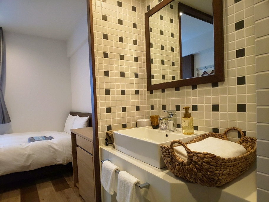 「アクセス・バイ・ロワジールホテル 名古屋」は、栄駅から歩いて約5分。ホテルのレンタサイクルを利用して、暮らすように名古屋の街を楽しめます。室内はナチュラルな雰囲気でリラックスでき、洗面所のタイルアクセントが可愛いバスルームで気分も上がります。朝食は5種類の自家製パンにサラダ、日替わりスープといったセットメニューをお部屋で楽しめ、新しい一日を穏やかにスタートできますよ。