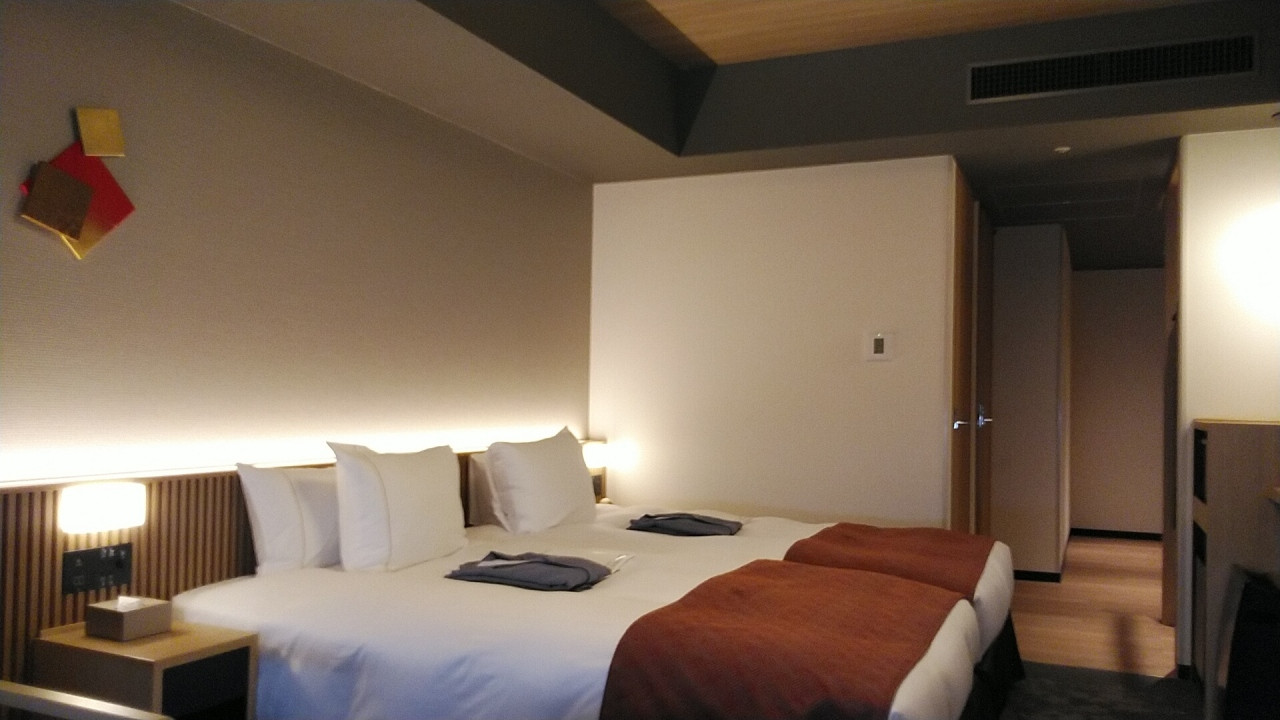 これまで宿泊してきたロイヤルパークホテルがどこも素晴らしかったので、前から気になっていたこちらにも宿泊。コロナ禍の状況により、土日以外ほぼ素泊まり3,000円代の料金で出してることも多いようですが、宿泊客も少なく、とても静かに過ごせました。お安い料金でもフロントの方はとても丁寧で安心です。さらに、今回は部屋をグレードアップしてくださり広めのツインを使用できました。新しいホテルなので設備は全てピカピカ、オシャレな内装に広いセパレートのお風呂、ネット対応のTV、また広くはないですが大浴場もあり、お籠りにもピッタリです。立地は梅小路駅の目の前で京都駅からも一駅、頑張れば京都駅まで歩くこともできる距離なので、そんなに不便は感じません。また、駅周りに飲食店などは少ないですが、ホテル1階にはコンビニ、ホテル横にはスタバもありますので、困ることなく過ごせると思います。海外からの観光客が戻れば、気軽に利用できる価格ではなくなるでしょうし、また予約も取りづらくなると思いますので、その前に今度は朝食付きで利用してみたいと思います。