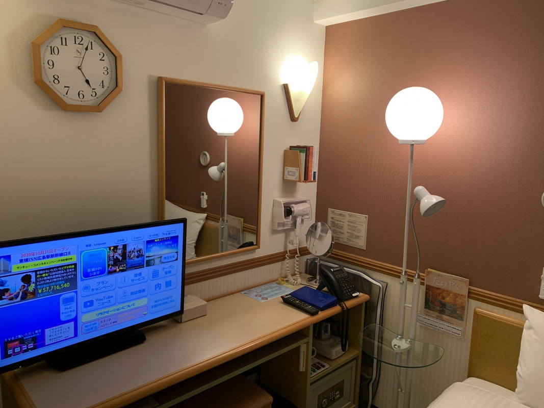 ツアーの指定ホテルでした。出雲市駅北口から徒歩1分、駅の真ん前です。チェックインは16時。古いホテルで部屋も狭いですけど、なかなか機能的で、とても清掃は行き届いています。無料朝食は味噌汁ついてコーヒーもありました。たとえば、コンビニ弁当と比較するならばとても上等でした。