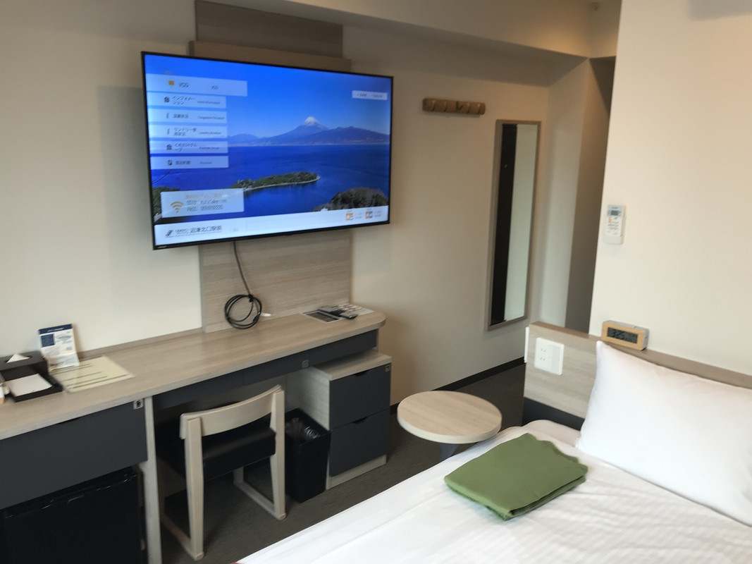 眺望無しの部屋なので眺望は悪いが、真新しい部屋は広く清掃が行き届き、ユニットバスの浴槽とトイレもゆったりとした広さがあり、大型テレビありと、かなりのお得気分の第一印象であった。