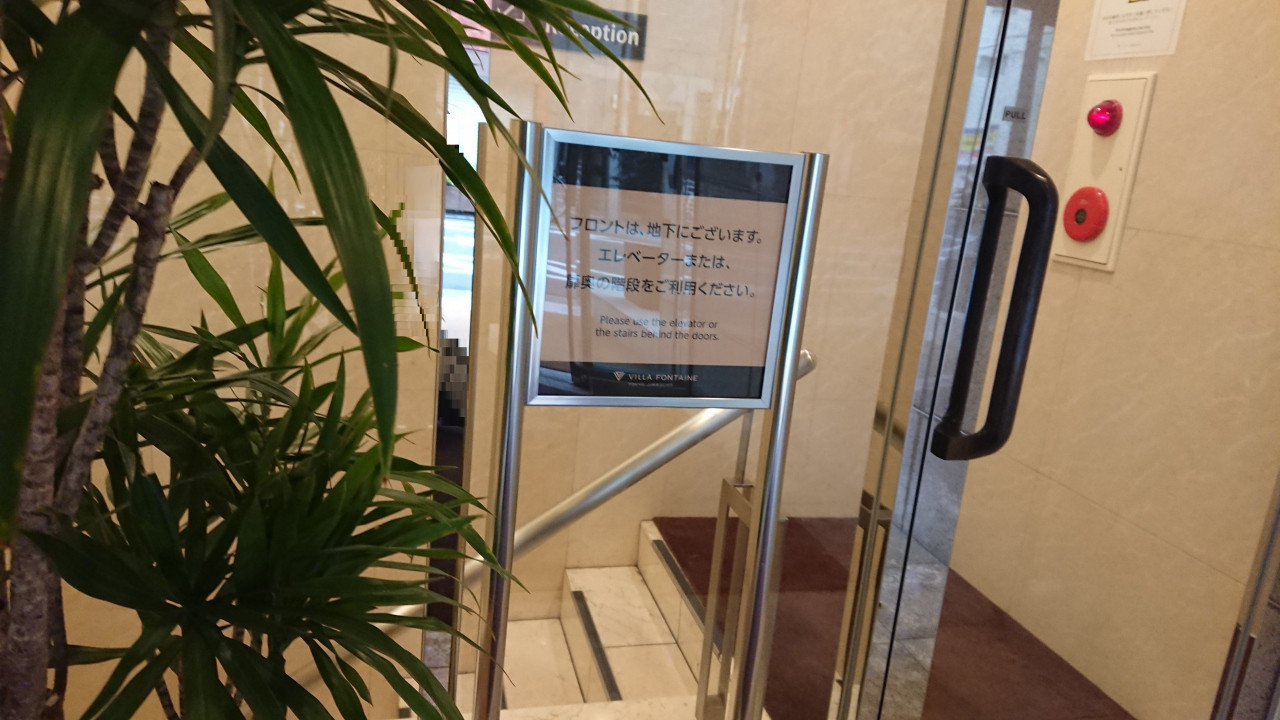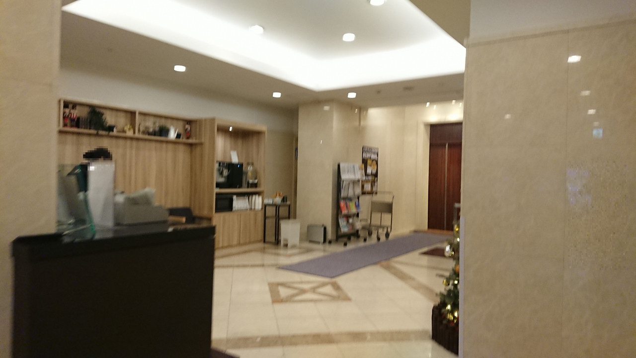 入口から階段を降り、一旦、地下にあるロビー&フロントへ。出入口はここしかなく、外出時は必ず通らねばならず、セキュリティー上は安全だが、買い出しなどで何度も通ると「いってらっしゃいませ」、「おかえりなさいませ」と声をかけられるのが面はゆいこともない。