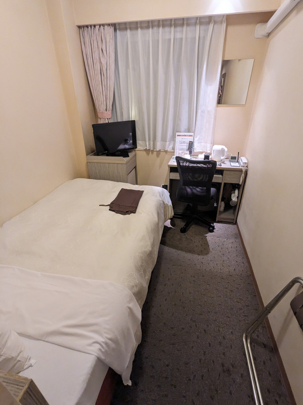 前から気になっていた施設。金曜宿泊だが、直前でもかなり安かった。建物やその他もろもろ古い感じはするがあまり気にならない。部屋はシングルだとかなりせまく、その点は不満。併設のまちなか温泉は自家源泉で泉質はとてもよい。朝食も地のものが多く連泊でゆっくり過ごすのもありだと思った。