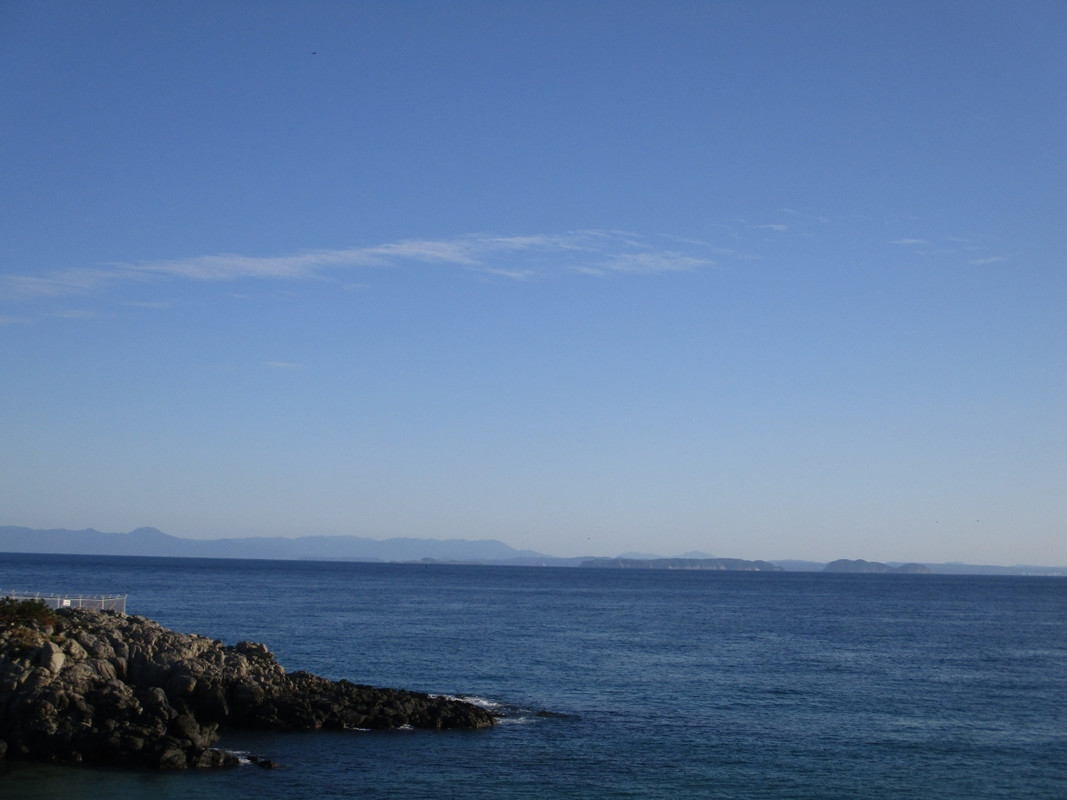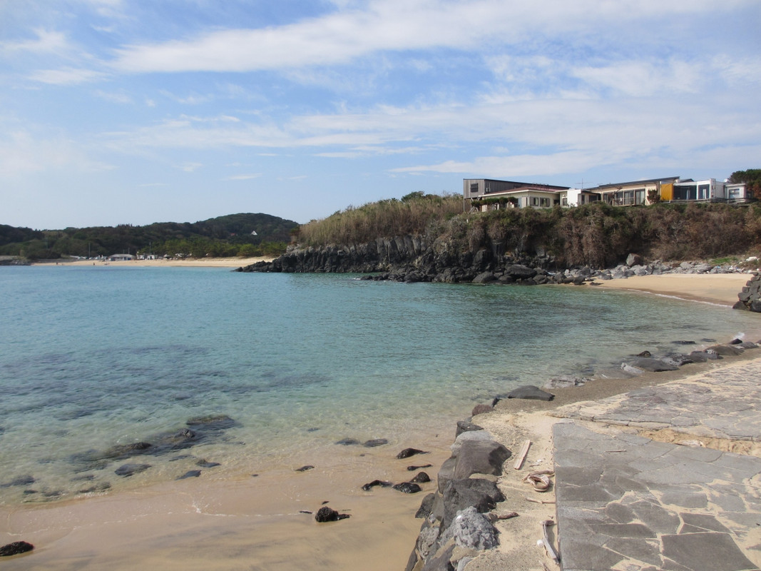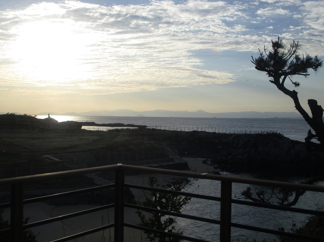 石田町の美しいビーチ(錦浜と大浜)をはさむ岬にたち、海越しに九州を望む眺めのいい宿でした。(壱岐空港も至近)