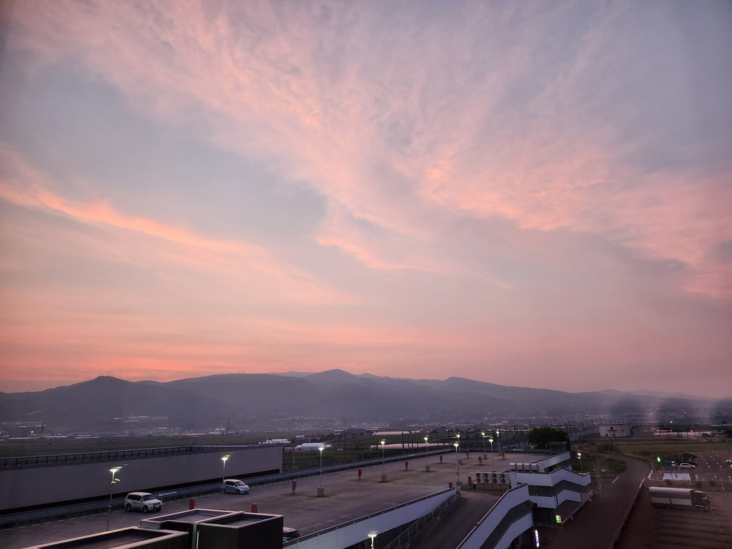 部屋から朝焼け、朝3時過ぎで明るい