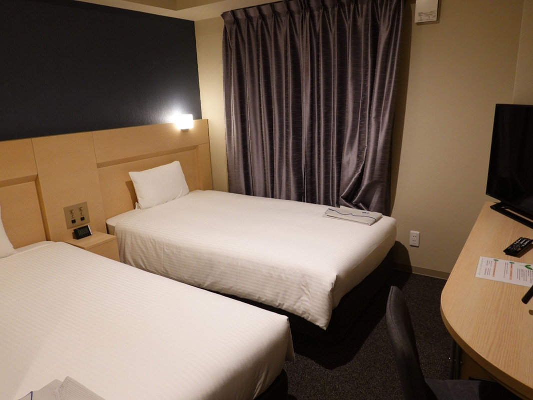 しまなみ海道旅行の時に宿泊しました。今治駅のすぐ近くなので、部屋から見ると真下を電車が走っている感じです。アンパンマン電車など面白いものも見ることができました。夜着いて朝出発というような工程でしたので、コンパクトな部屋でしたが十分快適に過ごせました。