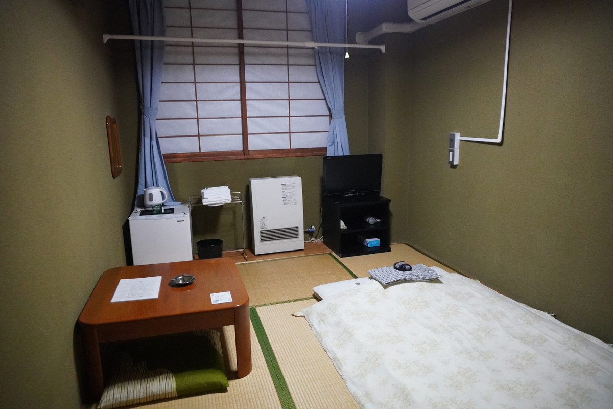夕方PM7:20頃にチェックインしたが、受付の人は対応がぶっきらぼうで愛想が悪かったのが印象に残っている。部屋は古めかしく、圧迫感を感じたので印象の悪いイメージだった。バス、トイレは共用で不便です。温泉の湯は流石に❝温泉!❞を感じられます。温泉の素泊りで¥5,350‐はやむを得ない料金だろうと思われました。