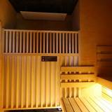 部屋付きの浴室はシャワーブースのみ。大浴場の様子は本文参照