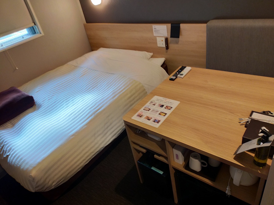 洗い場4つほどの小さいながらも天然温泉の大浴場があります。客室プランもスタンダードから色々ありますがオススメはエクストラルームプラン。別でデスクがあるのでビジネス利用には最適。全室禁煙なので喫煙者は1Fの喫煙所まで。1 / 2
