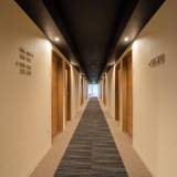 個室が並ぶ廊下は寝台列車のようだ。